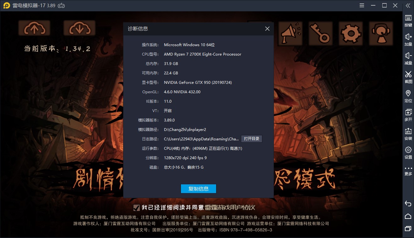 异化之地官服卡游戏界面,没有登录选项,已经试过3.89和3.90了,都一样。以前有账号的模拟器和新建模拟器重新安装的都这样。**安卓5.0版本没有这个bug,应该不是游戏bug。