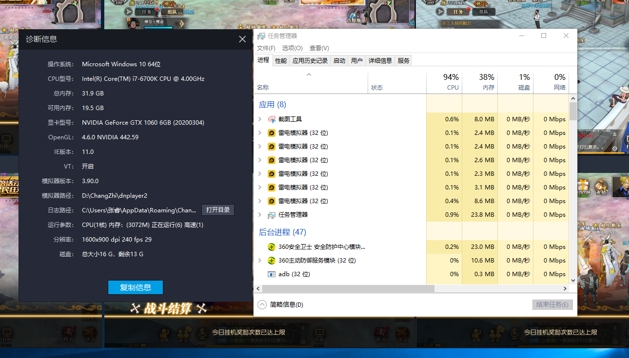 改1核2048或者更低试试 你这个CPU玩游戏性能是够用的 但是不适合多开使用 多开的CPU建议多线程的