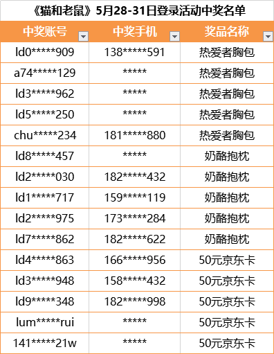 活动内容: 活动期间登录 雷电渠道《猫和老鼠:欢乐互动》 即可参与抽奖