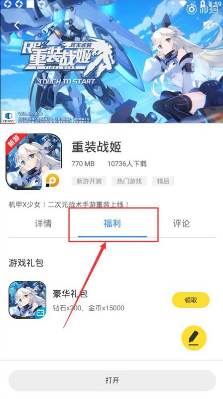 1、打开雷电圈,点击进入游戏详情页,进入福利页面领取礼包。