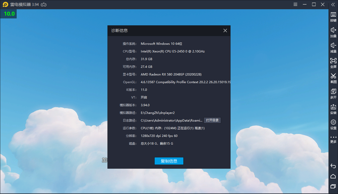 加载的时候掉帧是正常的,你要看进入游戏后,正常玩的时候的帧数情况和是否会卡,建议你把模拟器设置调到2核2048M或以上