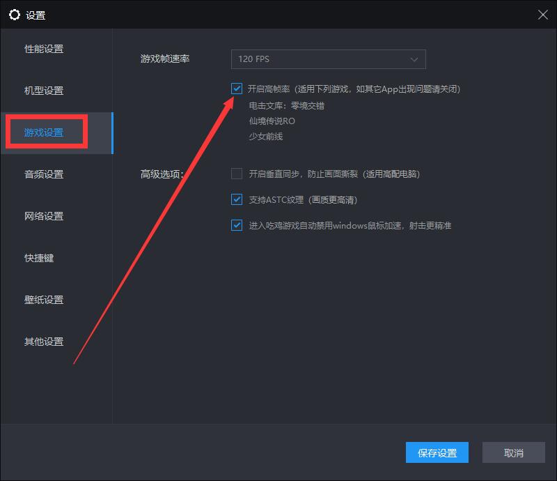 最后点击右下角的保存设置后重启模拟器即可开启高帧率效果~