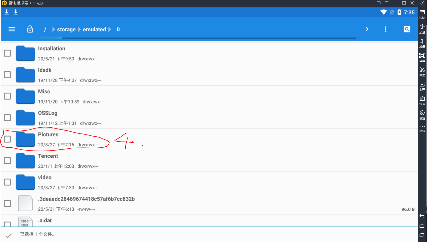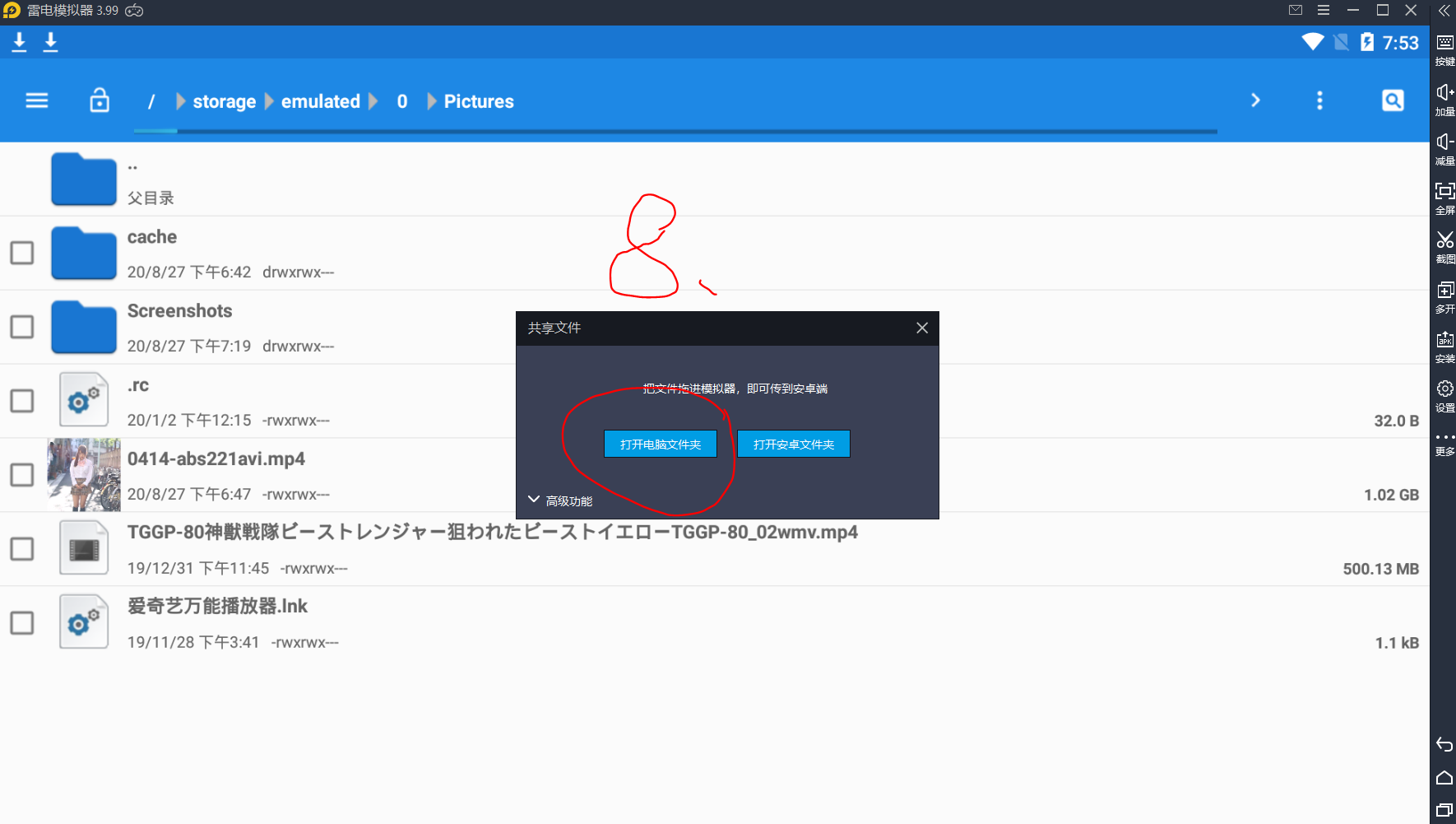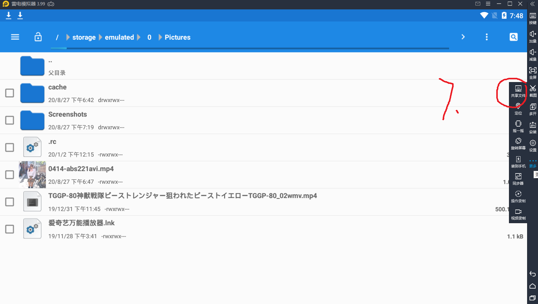 首先,在雷电桌面找到 文件管理器,点击打开内部存储设备
