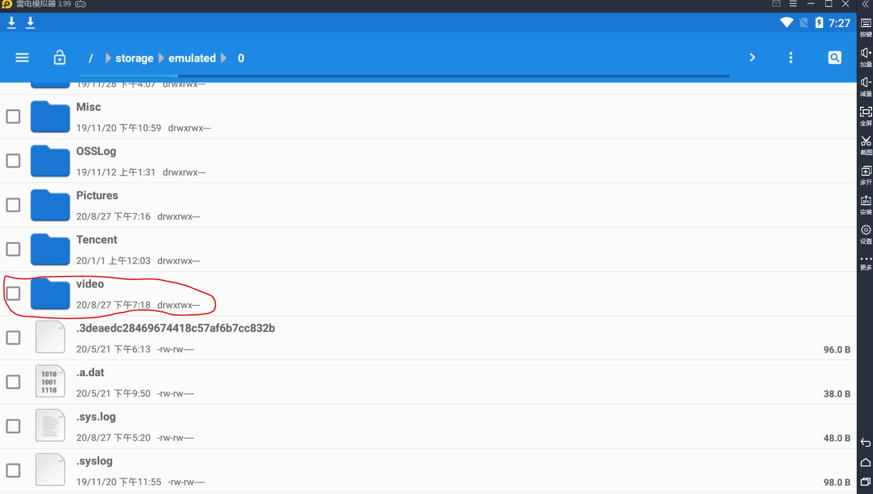 然后找到video这个文件夹,这个是模拟器上你用APP下载视频保存的位置