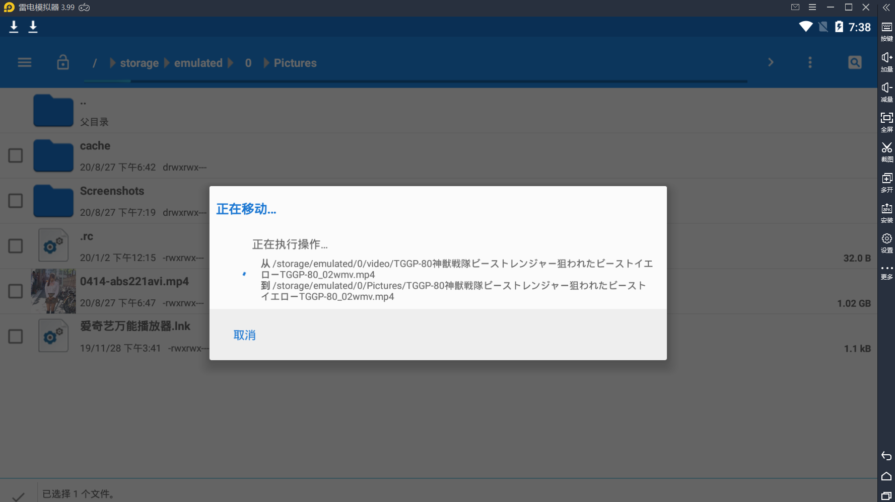 这个时候,系统开始将你模拟器上下载的视频文件复制到你的电脑上,耐心等待即可。
