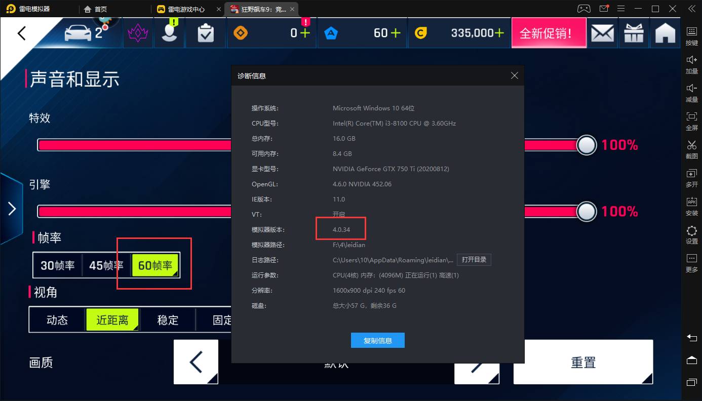 上一个版本模拟成三星s10+游戏内是有60帧选项的,昨天更新后选项消失,换成其他机型也是没有60帧选项