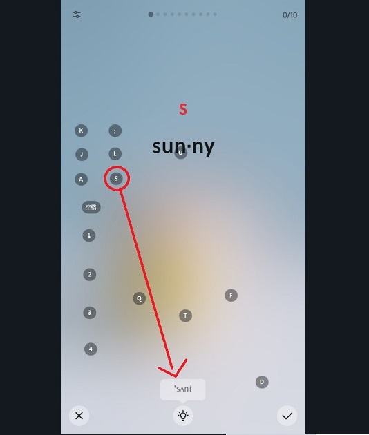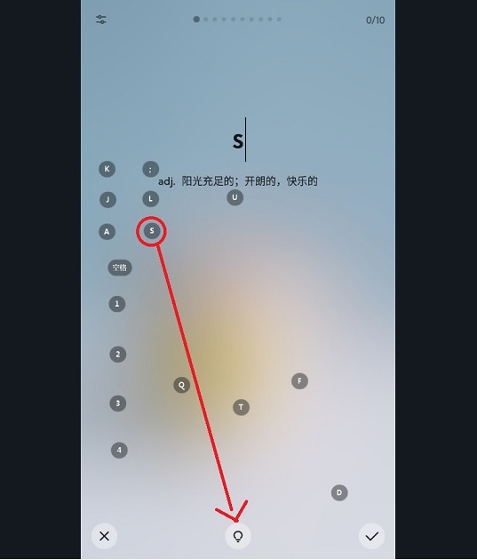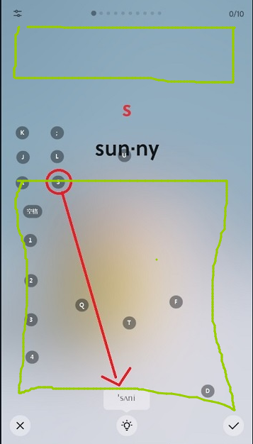 如图2,而当我敲“回车”键使光标失去焦点时,我再输入按键辅助键“S”,该辅助键就起了作用,屏幕中下角“灯泡”按钮就会被点击显示出了屏幕当前单词的音标,这不是我想要的效果,我想要输入文字按键辅助键就能起作用,我知道按键辅助键会和键盘输入发生冲突,请问有什么解决的办法吗?