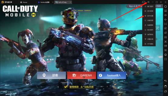 5 打开游戏,有3种账号登录,访客 GARENA FACEBOOK,如图