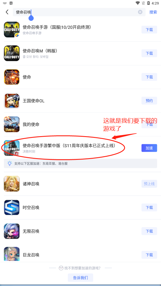 点击游戏库找到使命召唤 注意有国际法和台服 这里国际服是没有中文的 台服才有我们下载台服