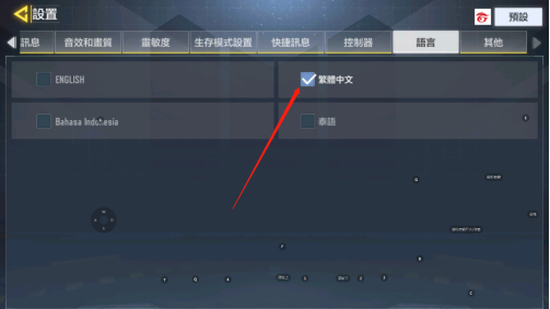 进入游戏之后界面是英文的 我们点击设置 选择语言 繁体中文确定就变成中文了