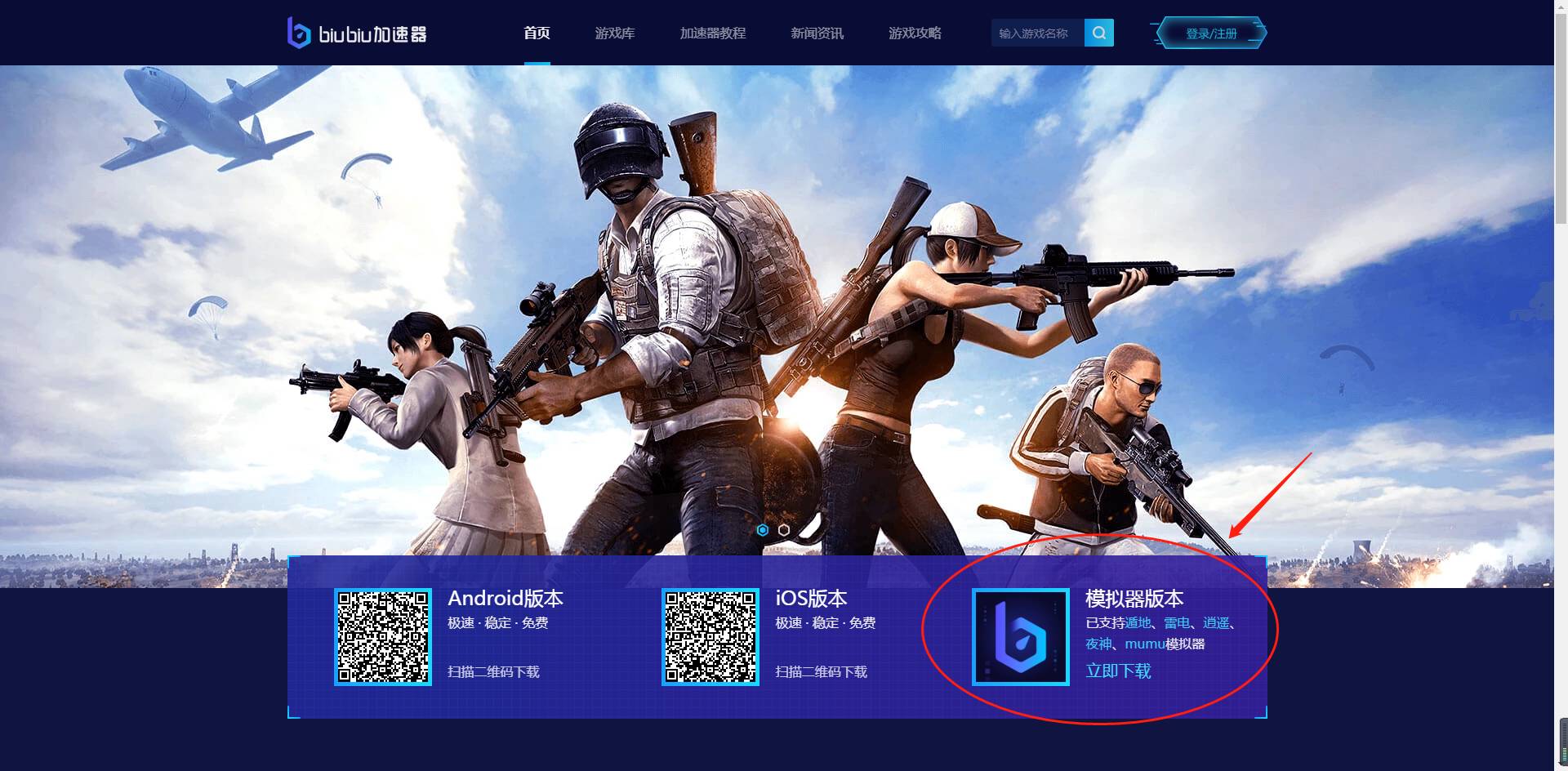 3 然后我们打开百度搜索biubiu加速器官网 下载最新的模拟器版本的APP