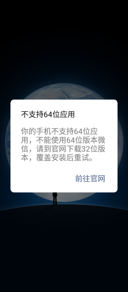 我安装的是雷电模拟器4.0.37的64位版本,安装了最新版本的微信7.0.20 (64位版本)为什么登录时会出现登录 不上,并提示 你的手机不支持64位应用....