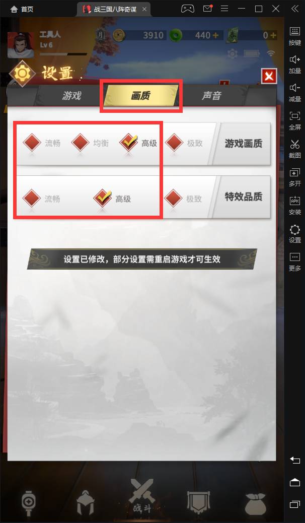 若游戏中出现闪退、卡死问题,请打开游戏中的设置,适当降低一下游戏画质和游戏特效,更改后需重启游戏
