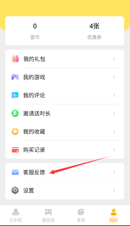 点击云手机预览界面下方菜单栏可以查看福利、发现新游戏以及联系客服。 (如图)