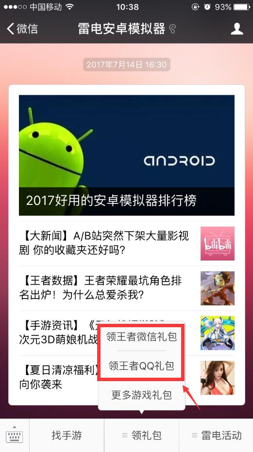 [postbg]bg4.png[/postbg]雷电模拟器微信公众号最新上架了两款王者荣耀礼包,现在我就来教大家如何领取。