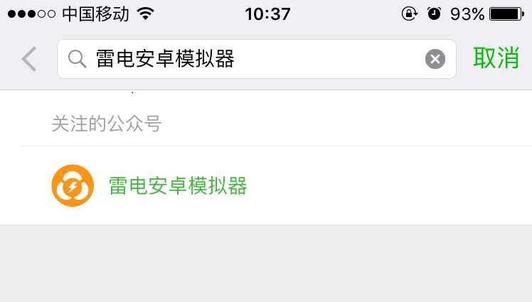 1、搜索并关注微信公众号“雷电安卓模拟器”,或者扫描下方二维码进行关注