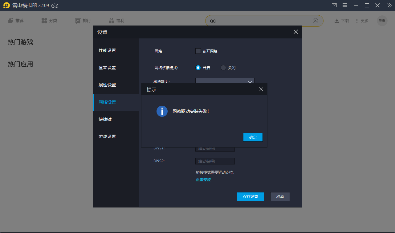 问题:新安装的雷电模拟器,打开模拟器应用市场一直转圈圈,连接不上。模拟器浏览器后打开无法访问网络。加QQ群没人通过,问题已经累计好几天没法处理~~~失望ING~~~官网上显示的方式都试过了,无果~~