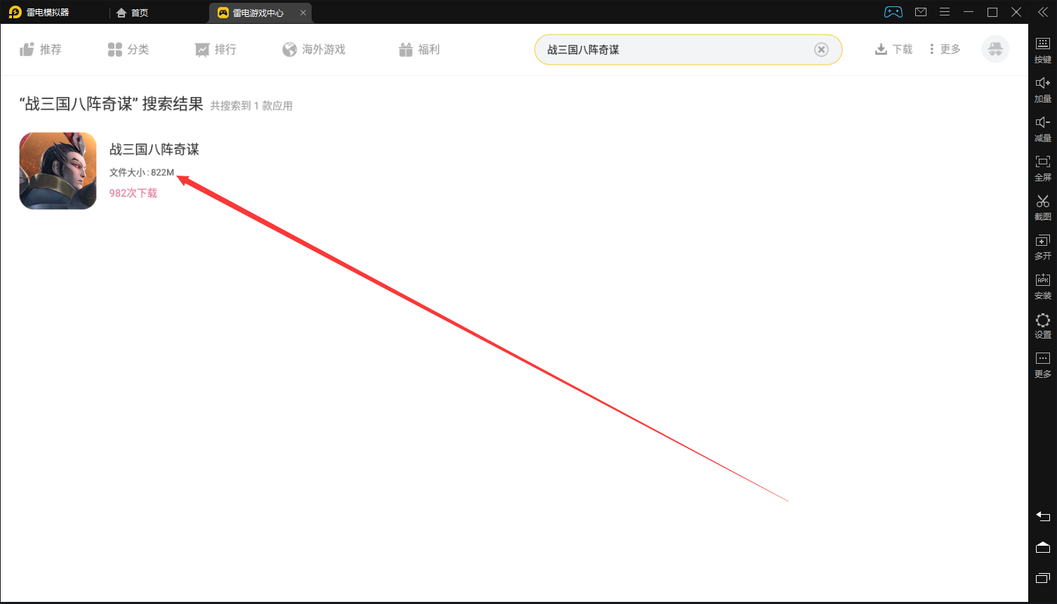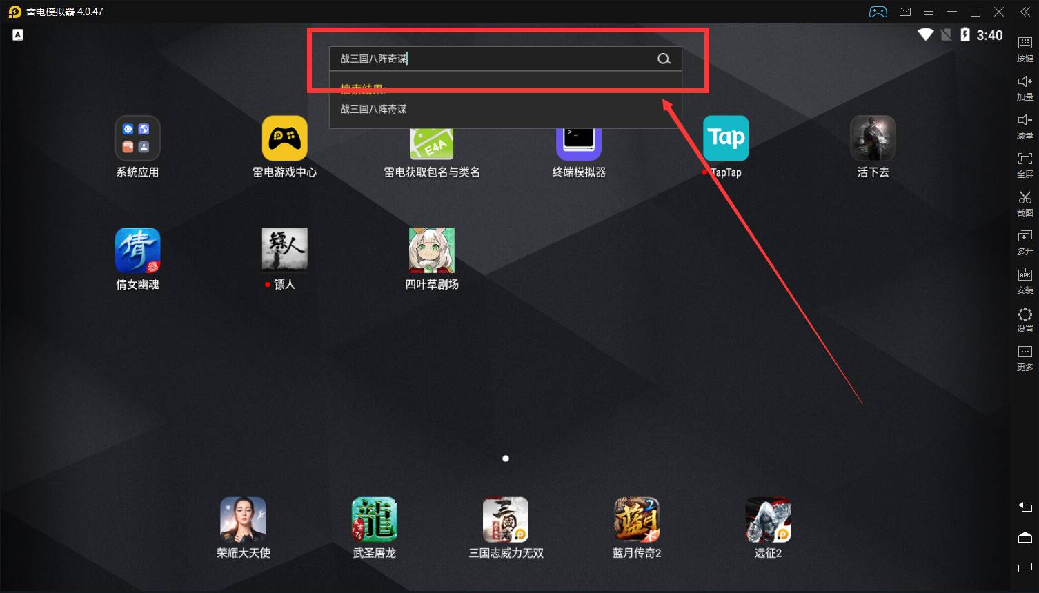 2、模拟器顶部搜索【战三国八阵奇谋】