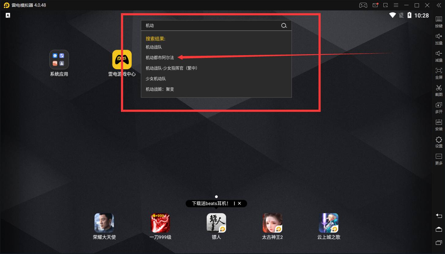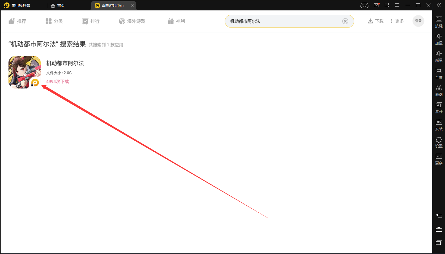 2、打开模拟器后在顶部搜索【机动都市阿尔法】