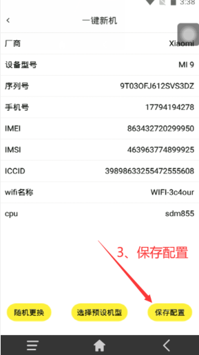 5、进入设备-使用扩展服务-一键新机,点【更换机型 MI 9】,点【保存配置】,弹窗确定重启设备,然后:(如图)