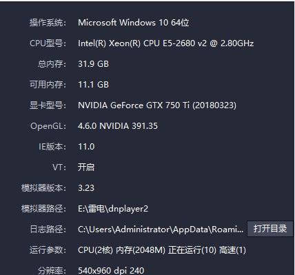 模拟器路径:E:\雷电模拟器\ChangZhi\dnplayer2