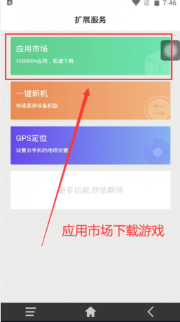 5、点击云手机桌面扩展服务-在内置的应用市场下载游戏即可
