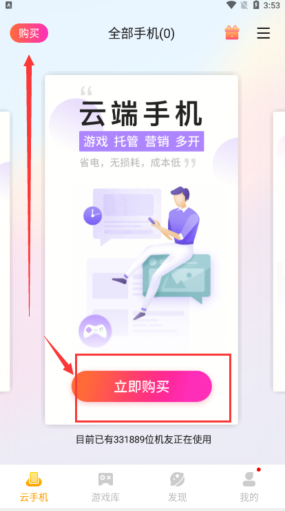 二:下载完成之后注册并点击购买云手机