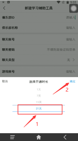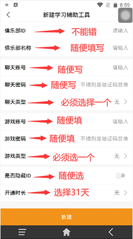 六、俱乐部ID不能错,其他随便填,开通时长选择31天(如图)-点击新建