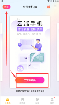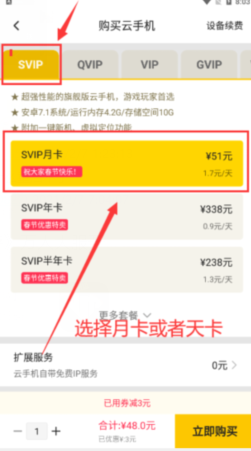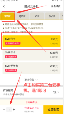 二、购买1台SVIP云手机,刷新后即可显示(如图)