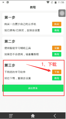 九、点击“小房子”回到云手机界面,点击学习辅助工具