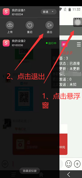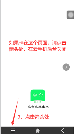 7、8、点击箭头处(云手机后台关闭回合APP)