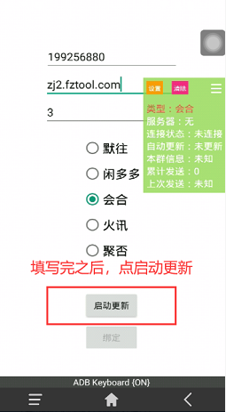 十、填写完之后-点启动更新-更新成功后,请绑定的提示-点击绑定