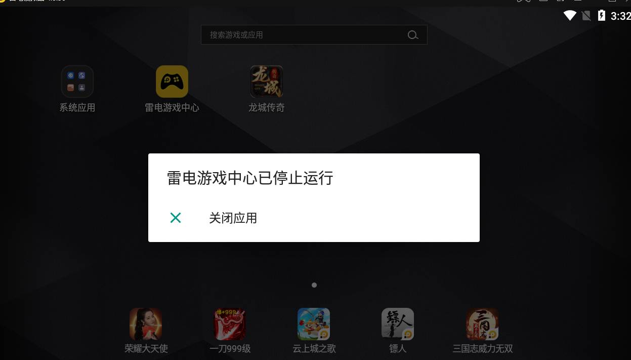 正常打开的,没有闪退的情况,另外你模拟器的雷电游戏中心出现的弹窗,可长按游戏中心往左侧栏拖,拖入信息后清理缓存数据,再重新打开。