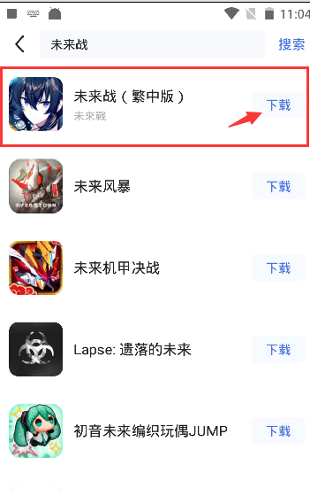 4.打开biubiu加速器,搜索未来战,然后点击下载