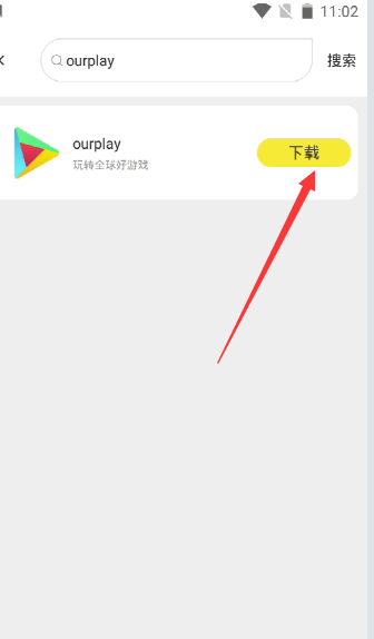 1.打开云手机,进入应用市场,搜索ourplay,然后点击下载