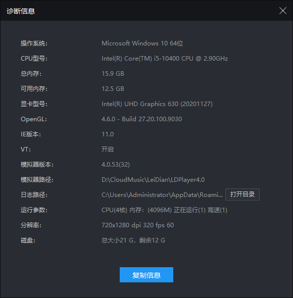 画面卡顿,甚至看不到画面,下面是我的诊断信息