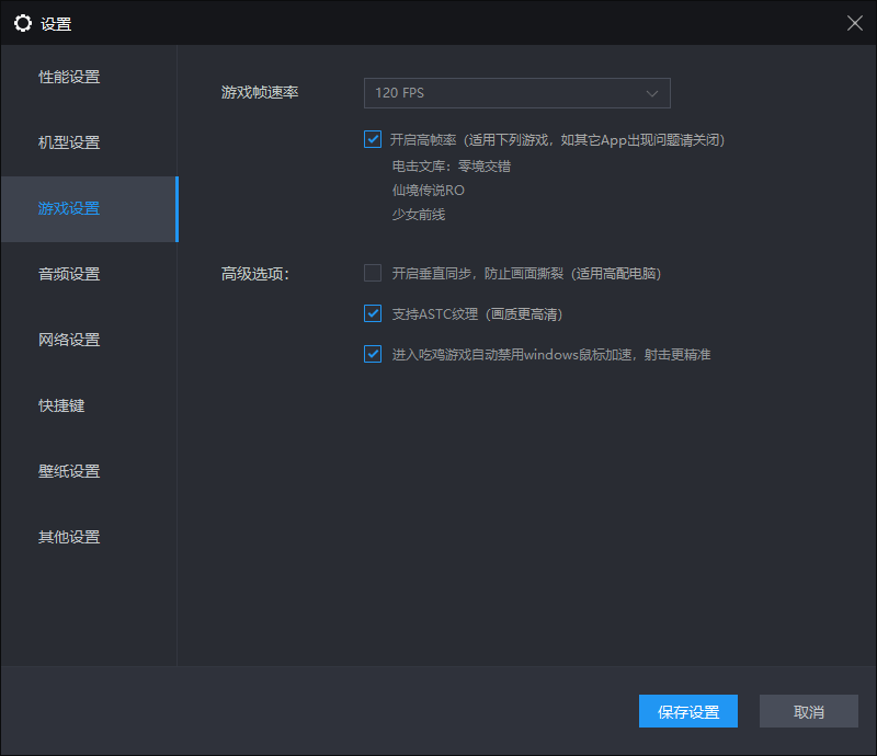 如下图帮助界面上下拉动正常120帧