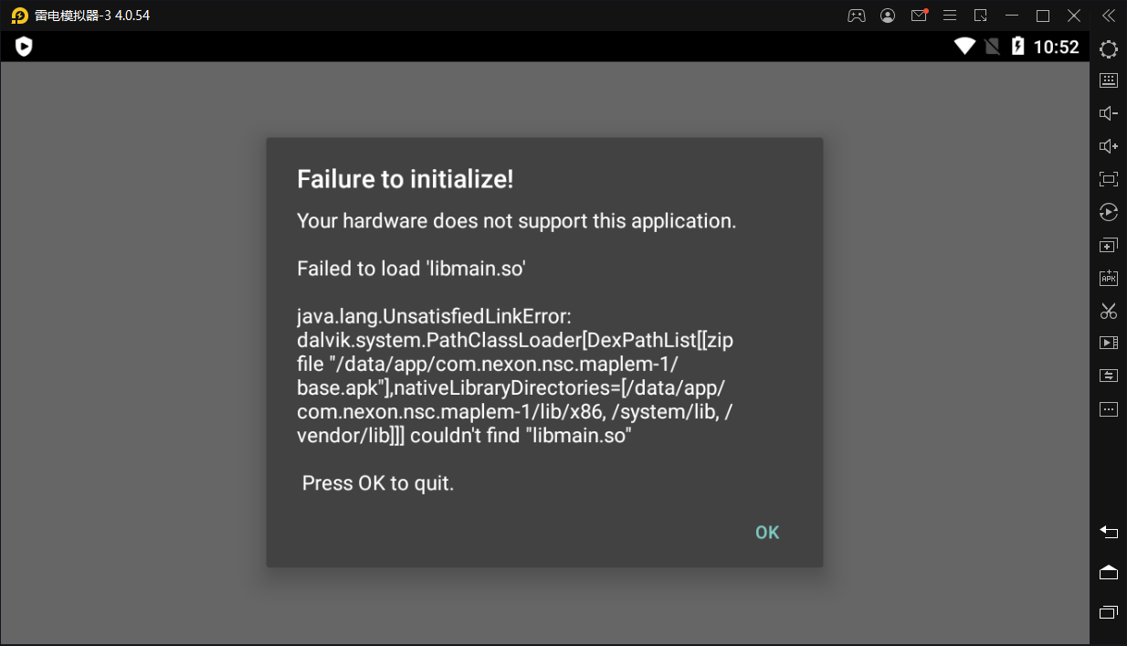 新建模拟器开启游戏出现如图提示无法启动,尝试过模拟器不同版本安装覆盖,换电脑测试同样操作结果一样,已经没有其他办法才上官网求助。