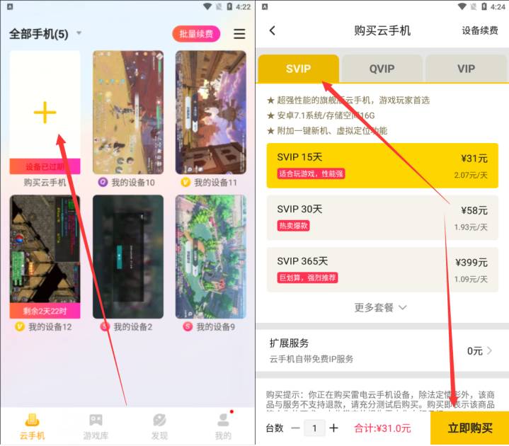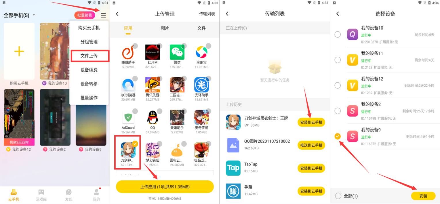 2、在云手机应用市场下载游戏,或者本机下载游戏包,通过文件上传功能上传进云手机