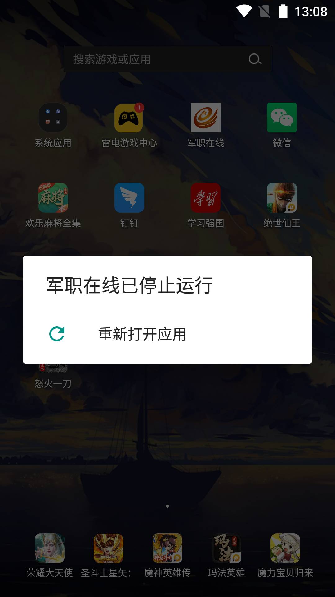 手机应用军职在线(雷电游戏中心下载)一打开文章就退出(模拟器版本4.059,3.118没事)