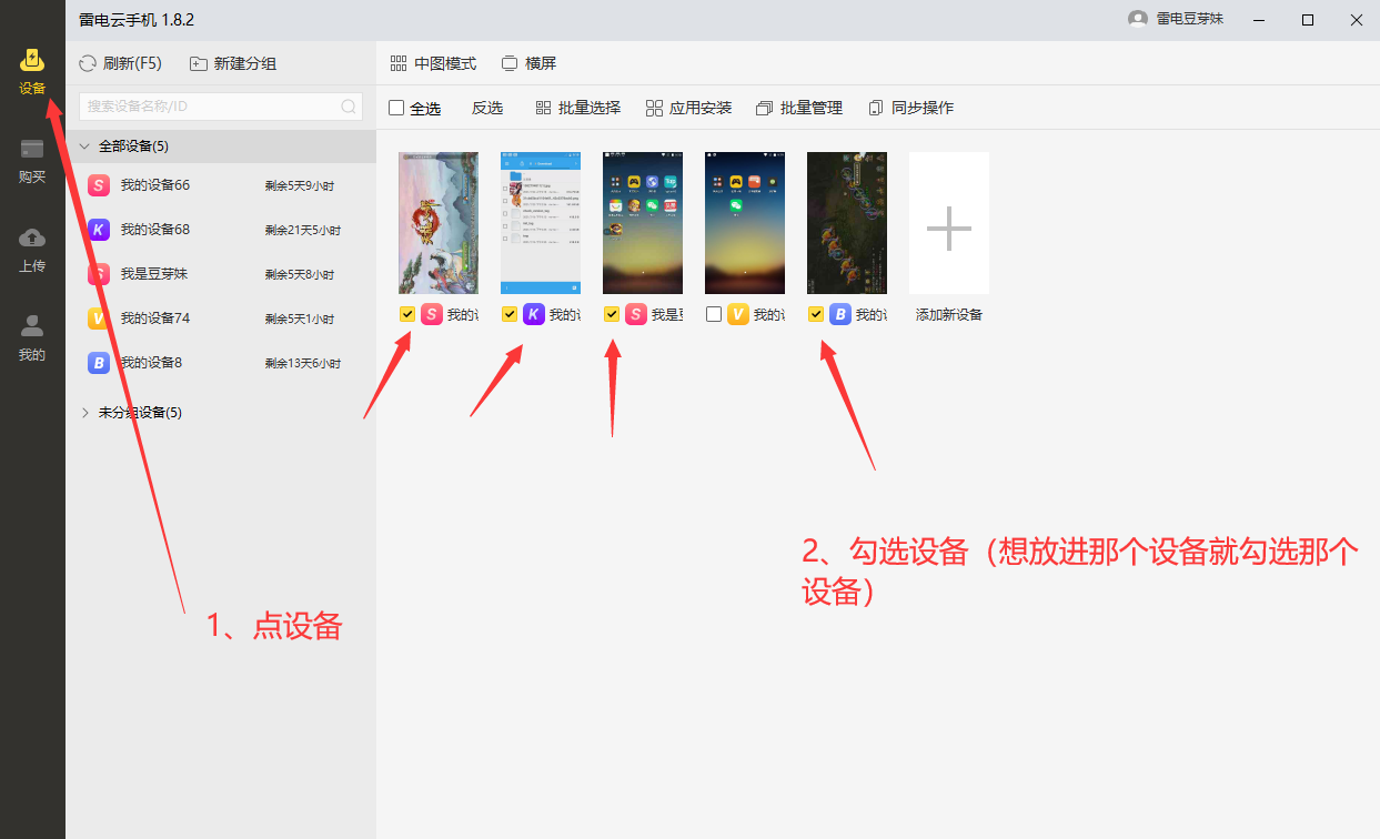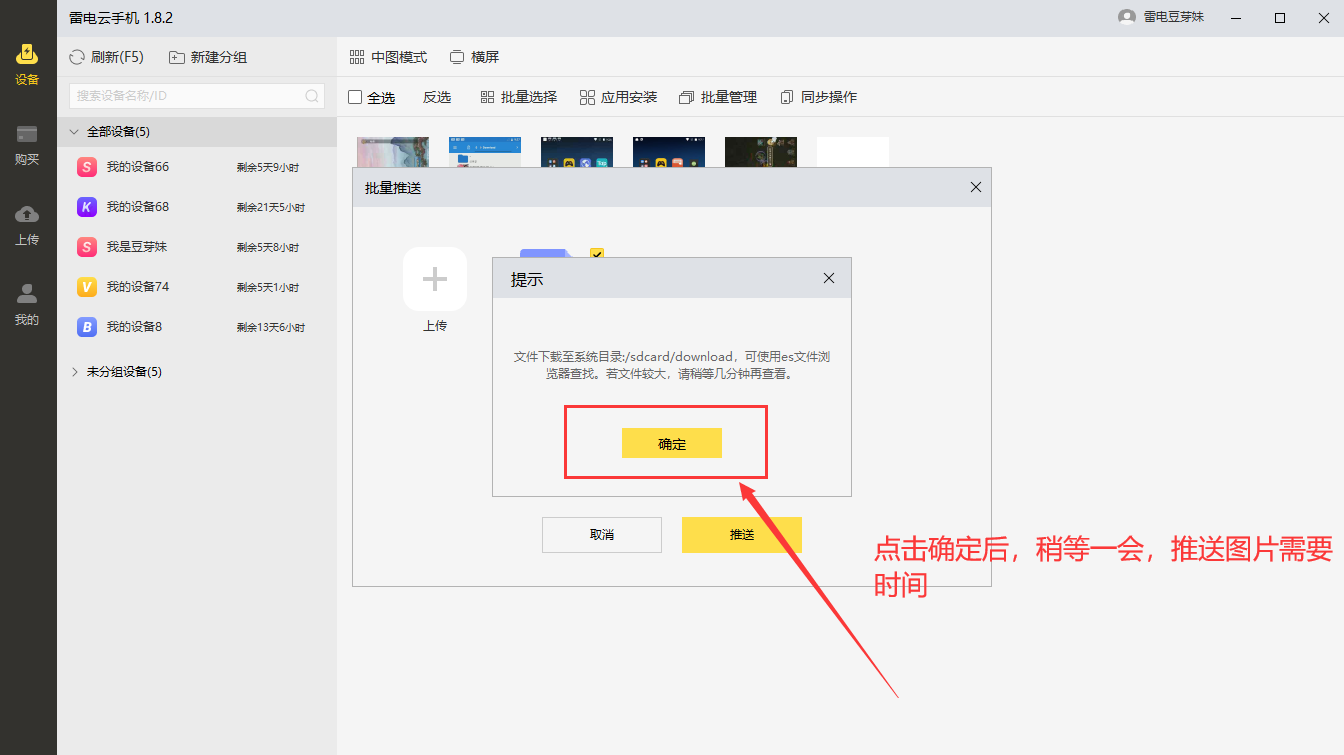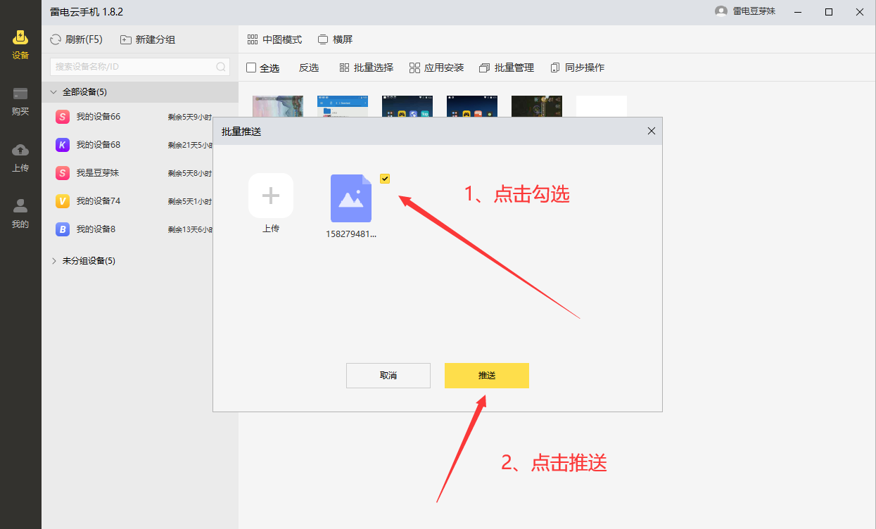 四:点击设备-勾选设备-点击批量管理中的批量推送
