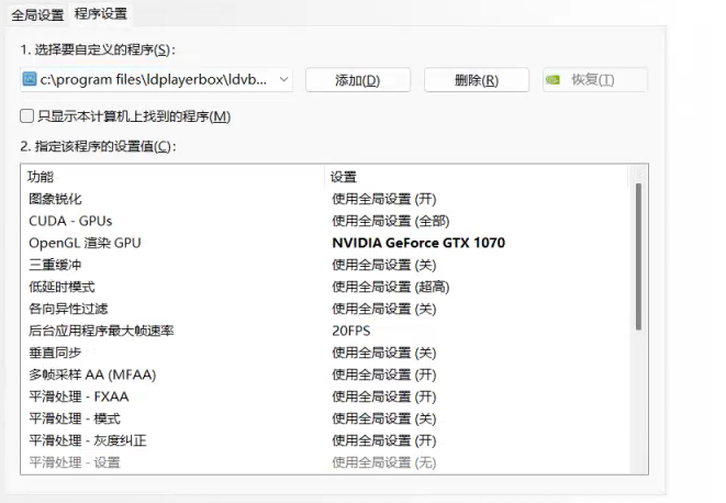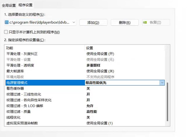 桌面空白处,点击NVIDIA控制面板。进入控制面板之后在左侧选择3D设置的管理3D设置,在右边的程序设置中,把模拟器主进程“LdBoxHeadless.exe ”添加进去。进程路径是C盘的Program Files/dnplayerext2文件夹。