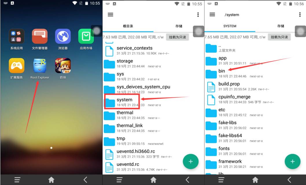 4、打开Re文件管理器,把system文件夹里的bin文件夹里的su文件重命名为mysu