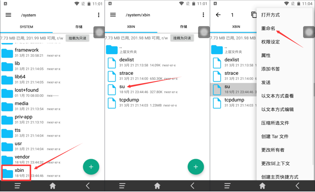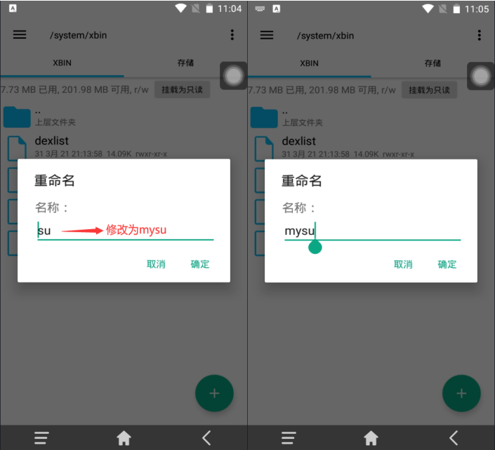 5、把system文件夹里的xbin文件夹里的su文件重命名为mysu