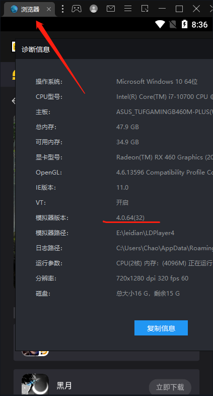你打开了标签模式,打开窗口时会遮挡掉模拟器的“名字”,想一直能看到模拟器名的话可以在模拟器设置里把标签模式关闭