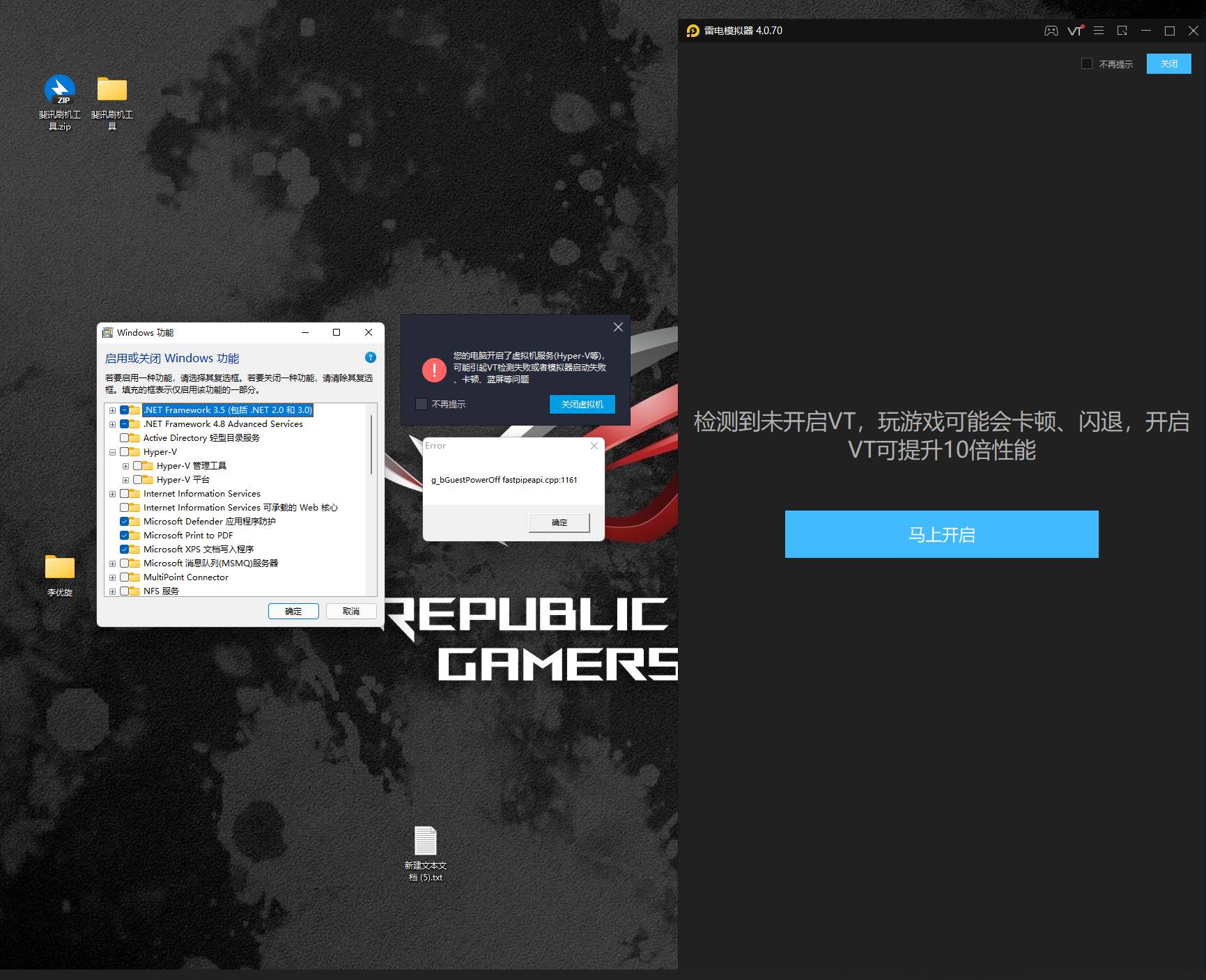 确认开启了VT 关闭了hyper -v