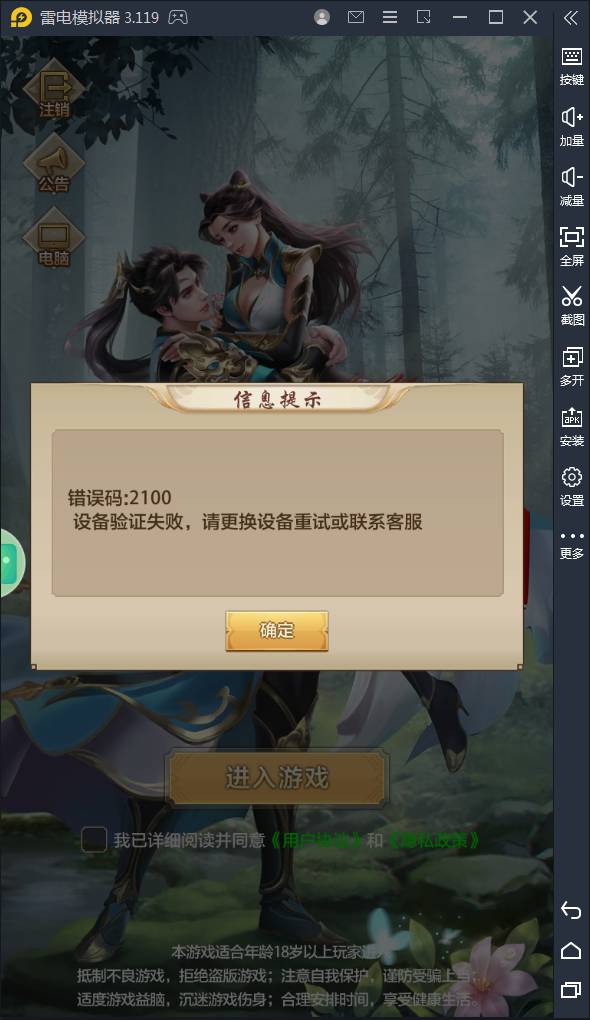 模拟器登录游戏提示设备验证失败 这要怎么处理