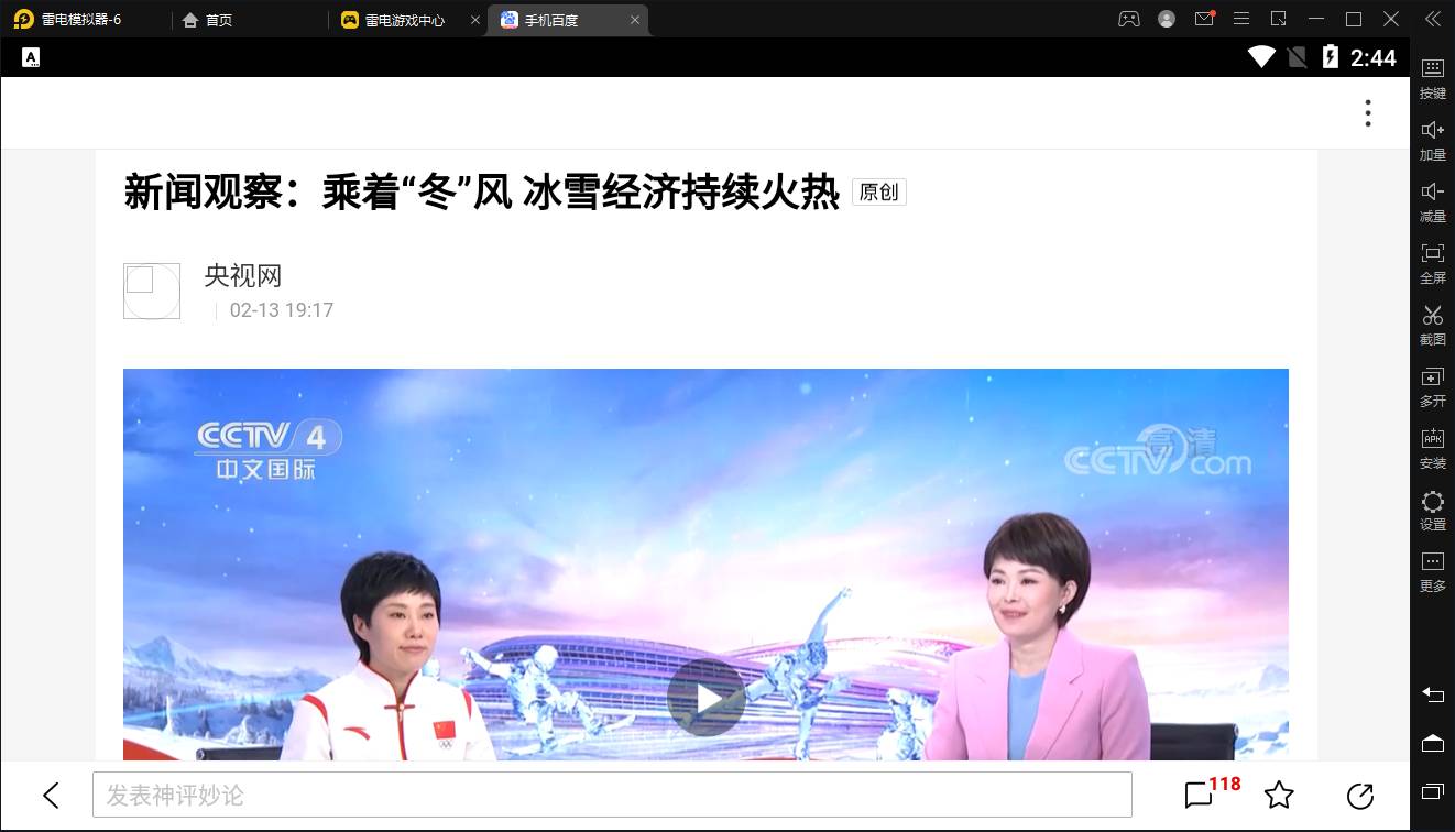 为什么雷电模拟器的百度极速版APP,打开文章,APP就停止运行或者自动关闭?