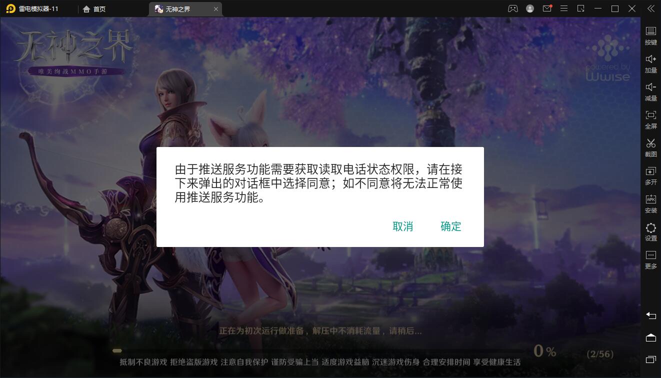 首次进入游戏后出现权限提示消息,点击确定后游戏闪退