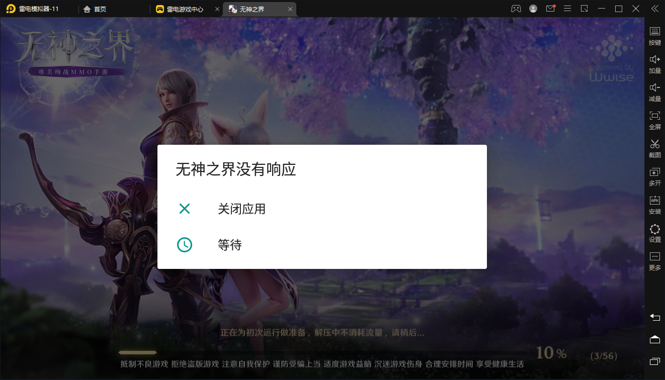 1.进入游戏后,出现权限提示消息时不要立即点击确定,后续会出现游戏无响应的提示,再次点击等待按钮即可进行游戏